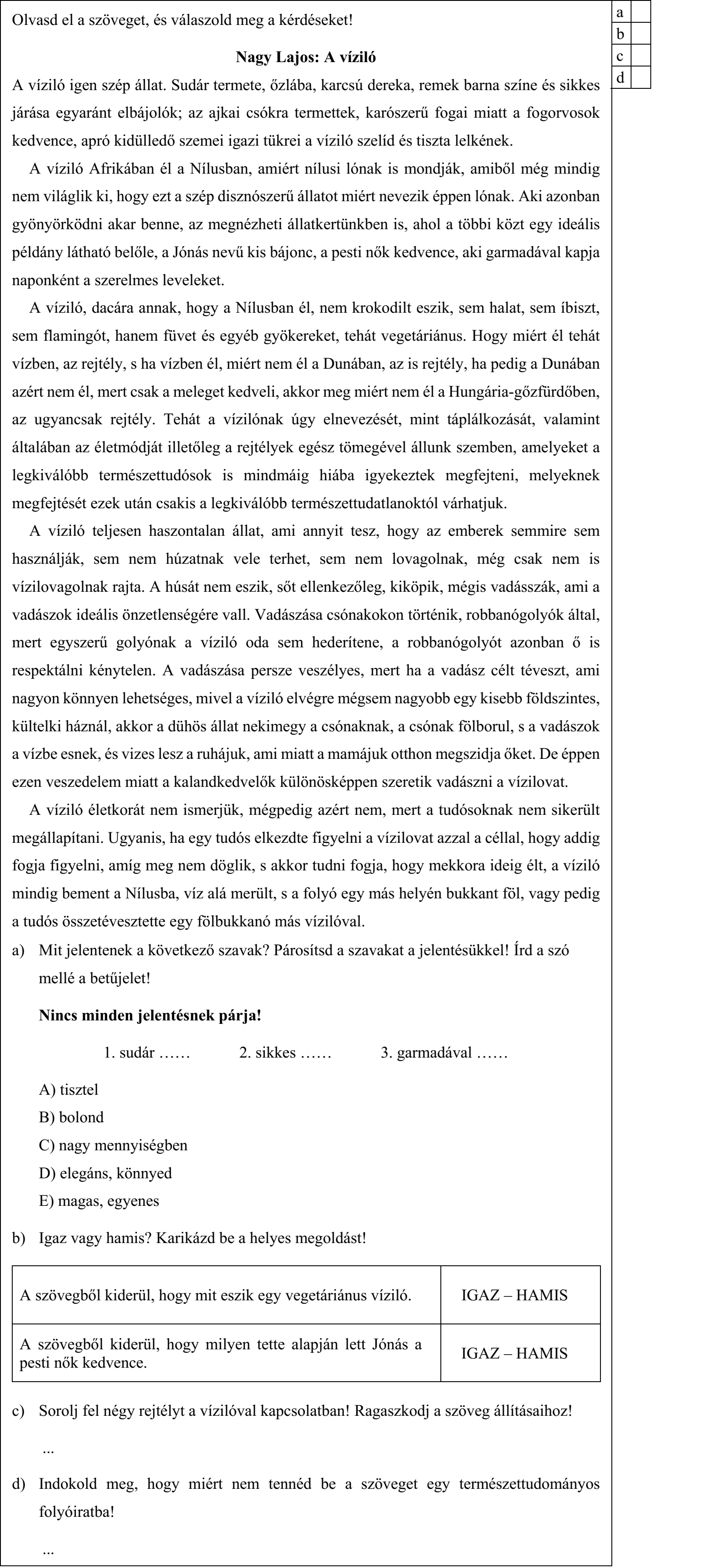 Felvételi 6 osztályos gimnáziumba /